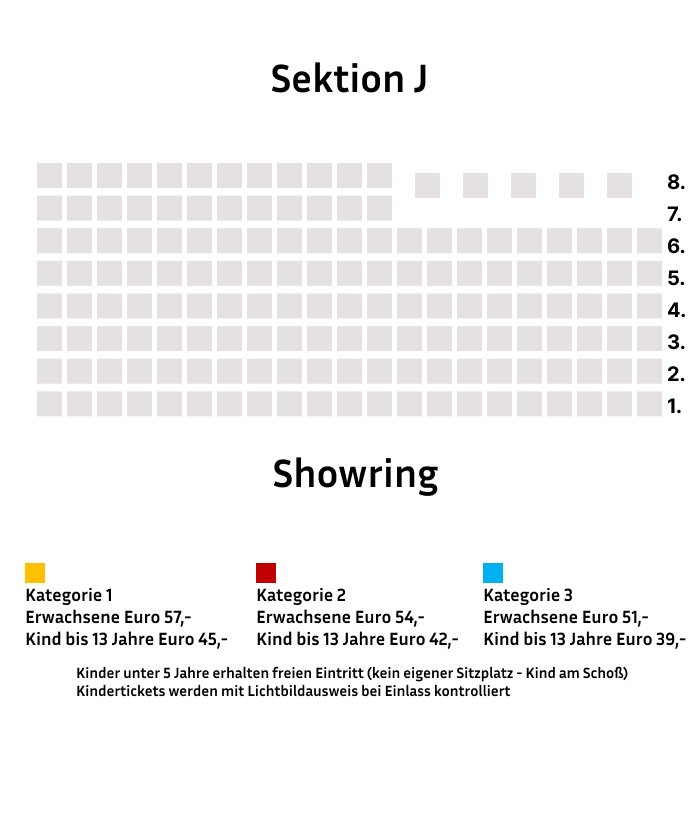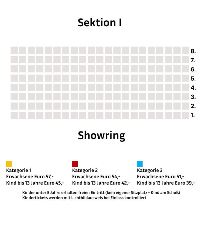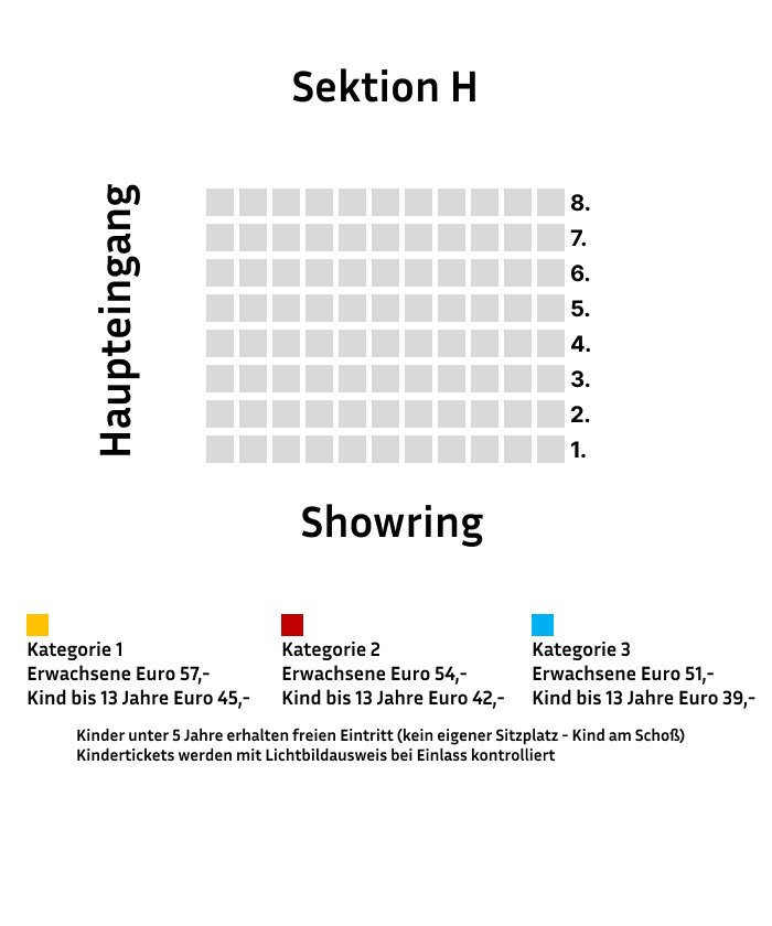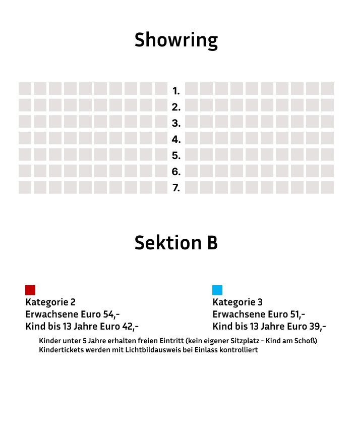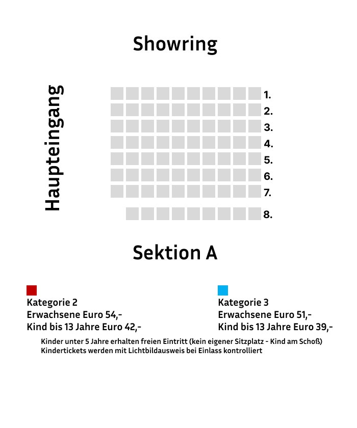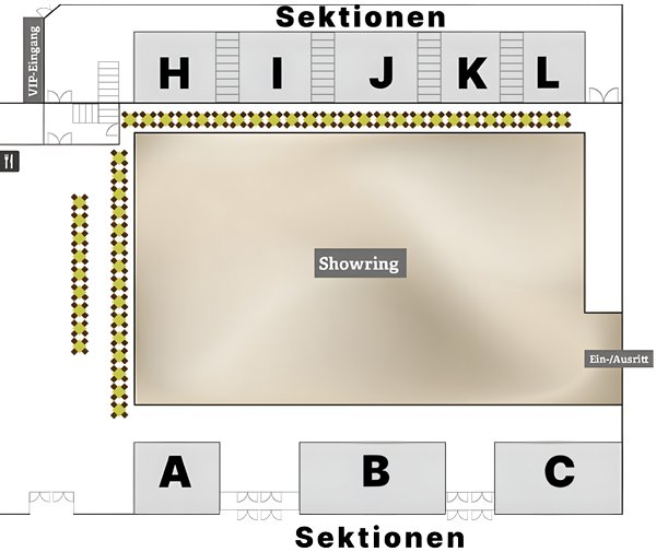 Die VIP-Tische befinden sich – wie am Saalplan ersichtlich – in Premiumposition direkt rund um den Showring und bieten Ihnen somit beste Sicht und Nähe zur Show.